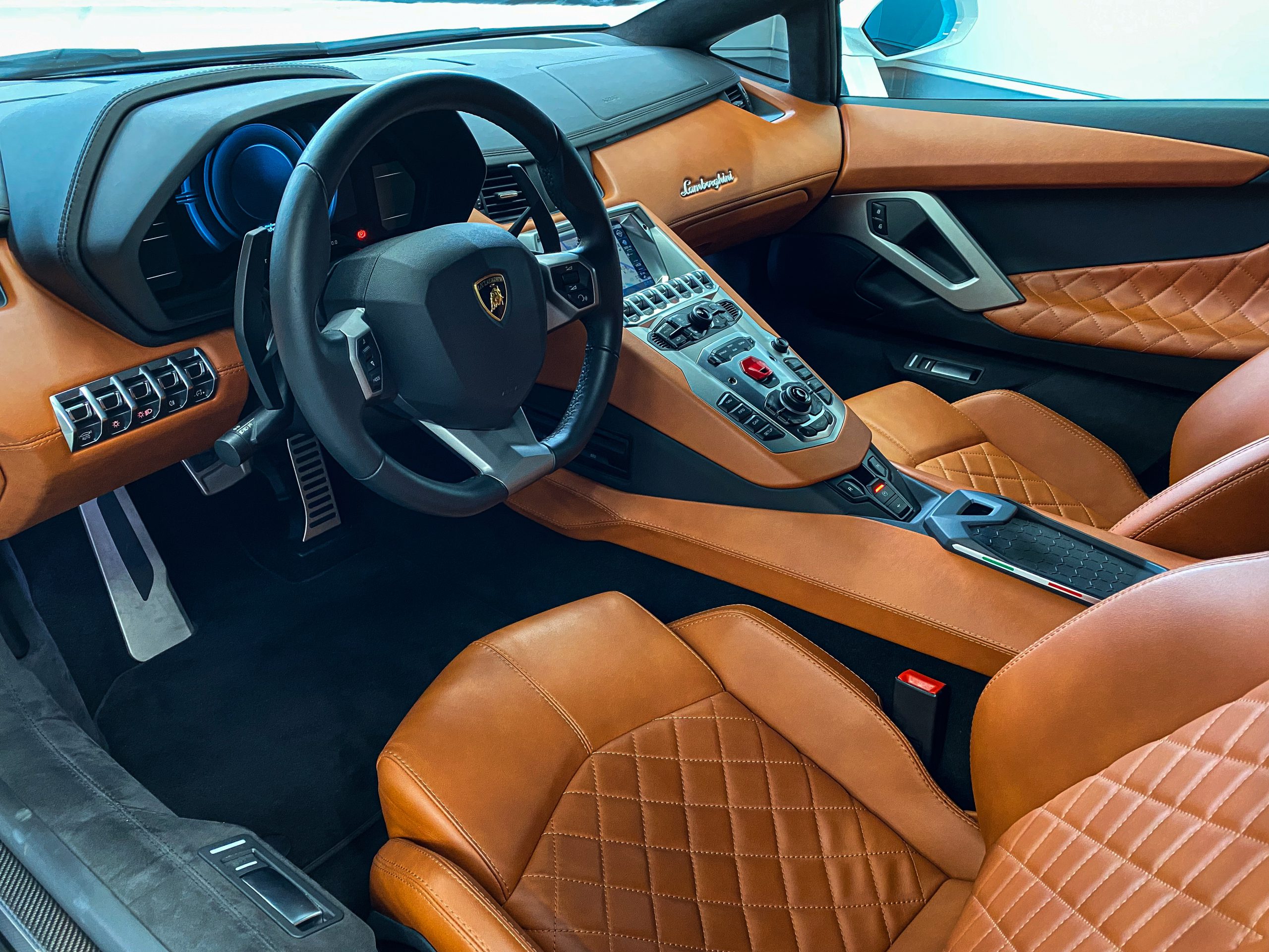 Aventador S は、最先端テクノロジーを駆使した究極にラグジュアリーなスーパー・スポーツカーです。内装の仕上げには最高品質の材料を使用しており、そのバリエーションは無限にあります。グラフィックがデザインし直された液晶TFTインタラクティブディスプレイのインスツルメントパネルなどの最新技術と、専用に開発されたLED照明システムが優雅さに融合します。