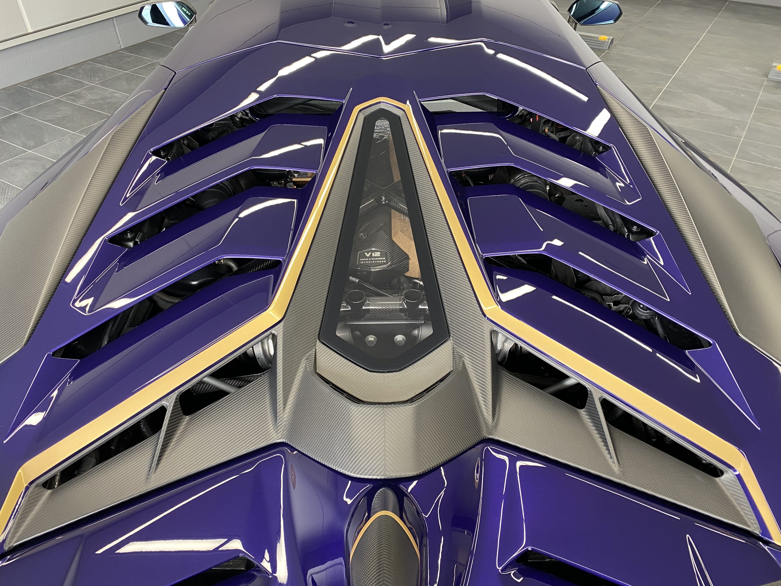 特別カラーリングと特別仕上げによる限定生産63台のみのスペシャル・エディションは「SVJ 63」と名付けられ、カーボン・ファイバーを広範囲に採用されています。