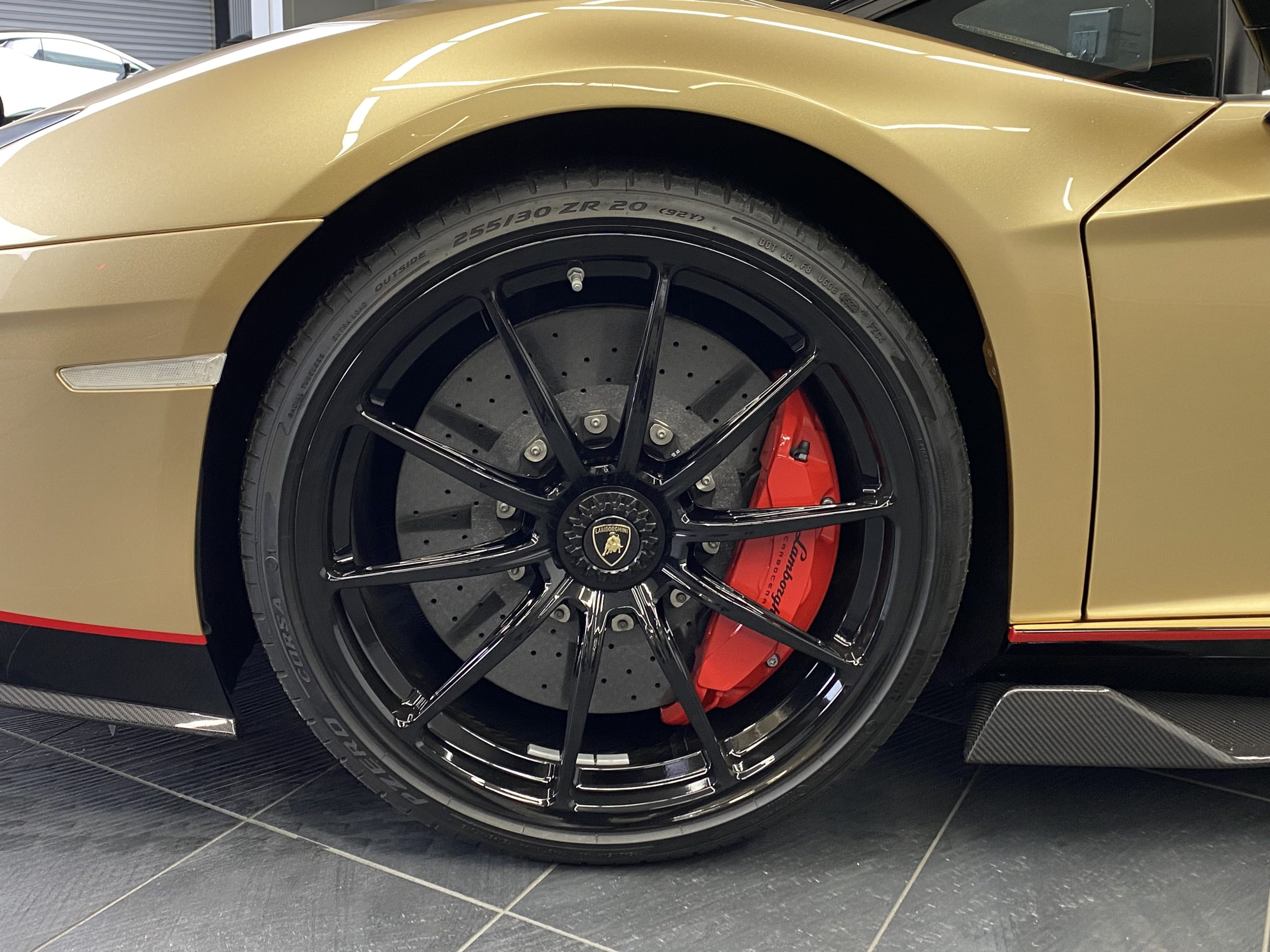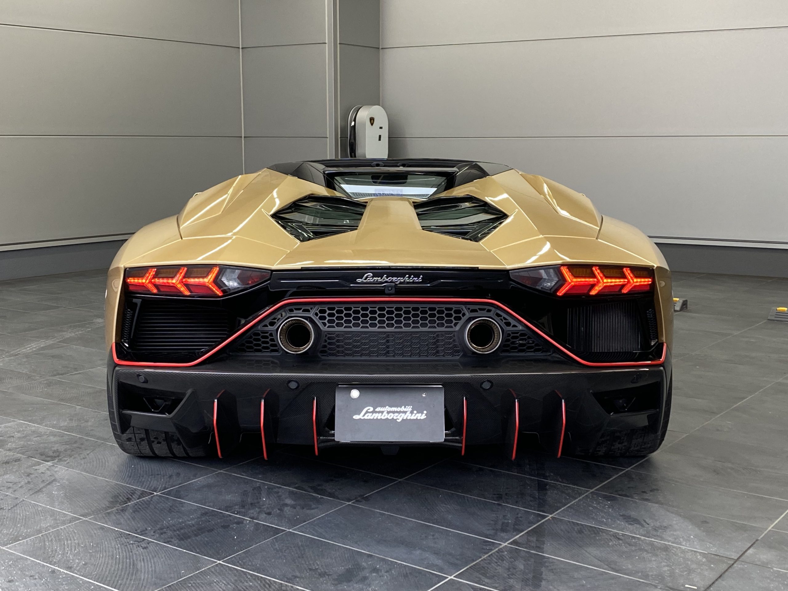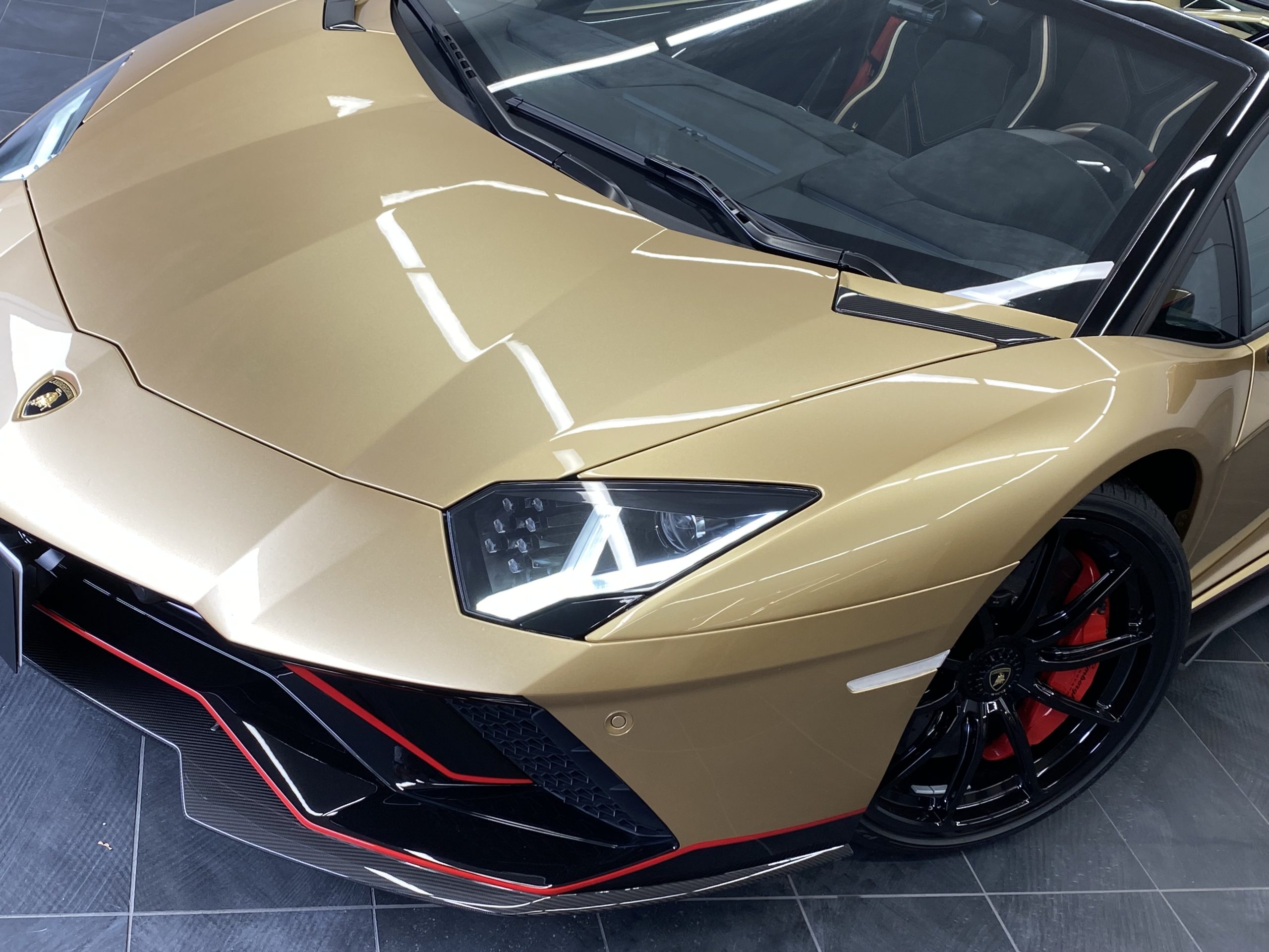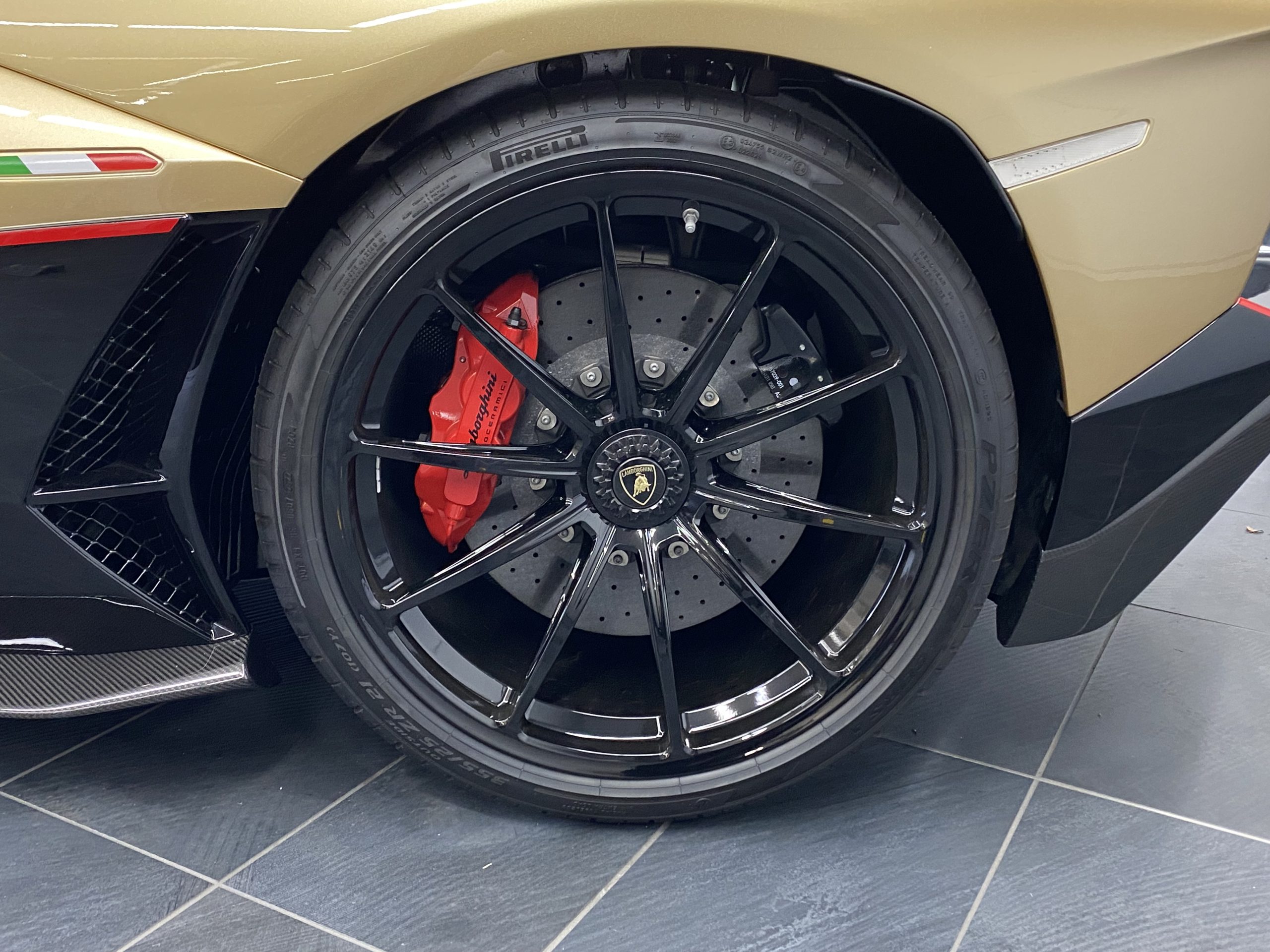 Centro Stile LamborghiniによってAventador最高峰モデルのために特別にデザインされたカラーリングは、そのフォルムと見事に調和しつつ、ブラック部分と塗装部分とのコントラストを美しく演出しています。