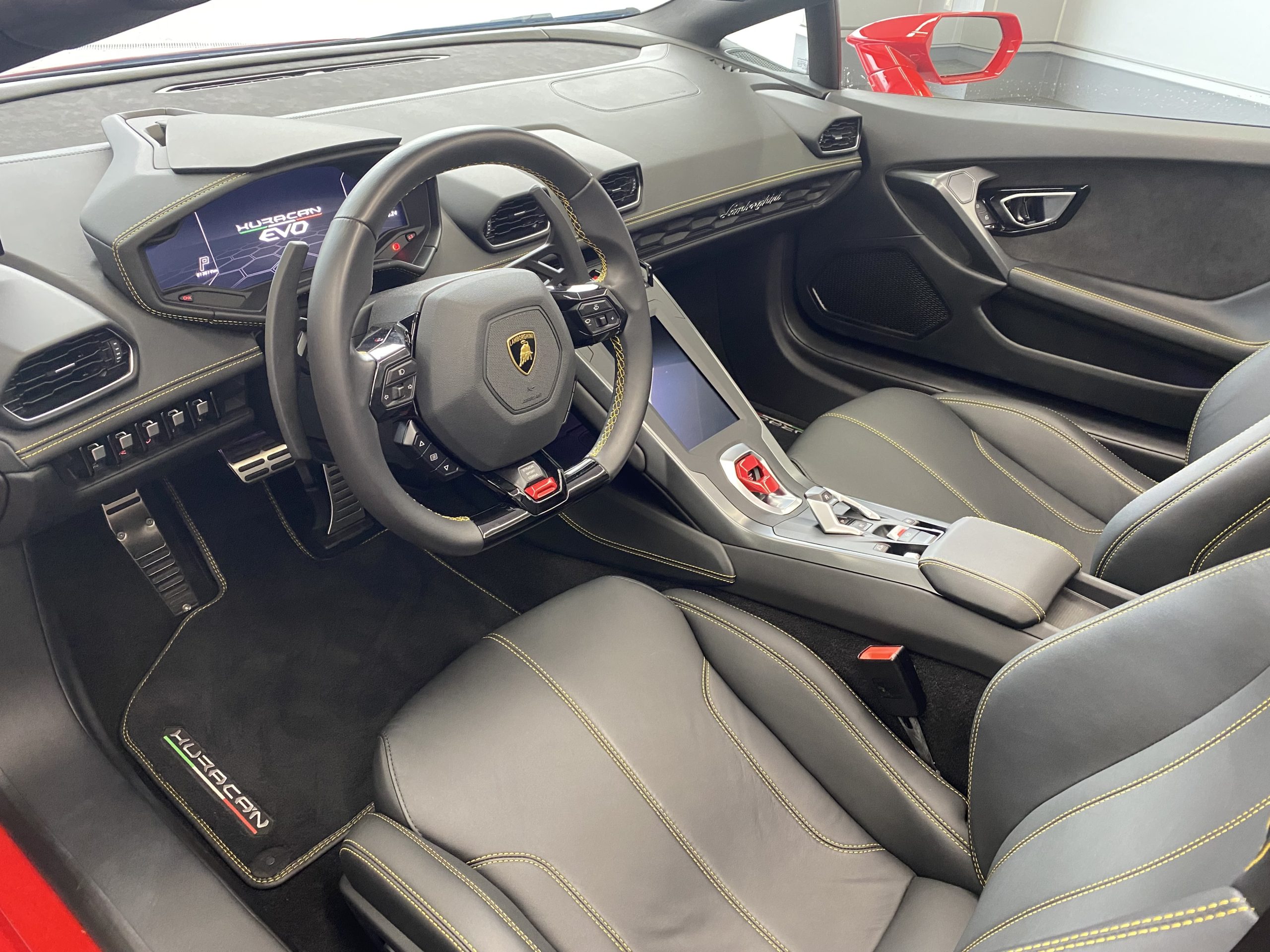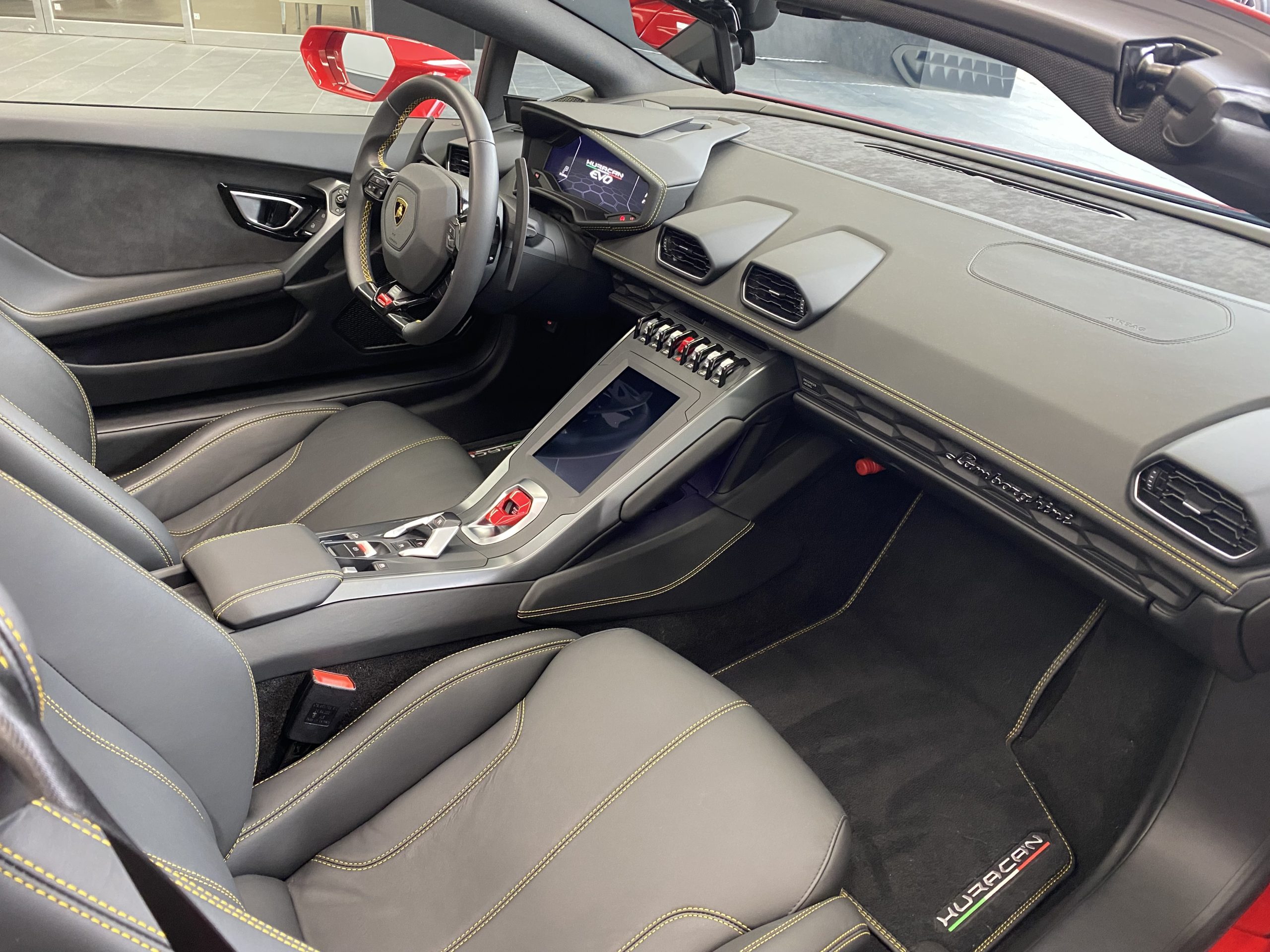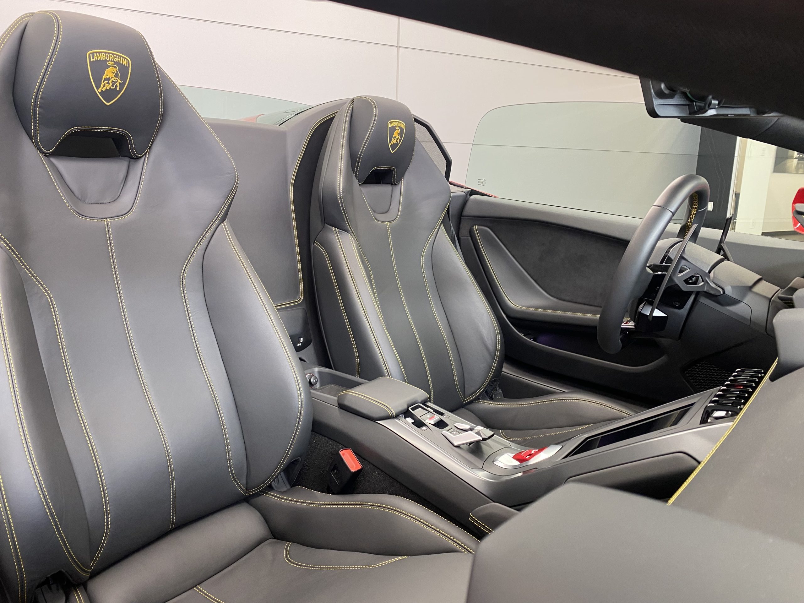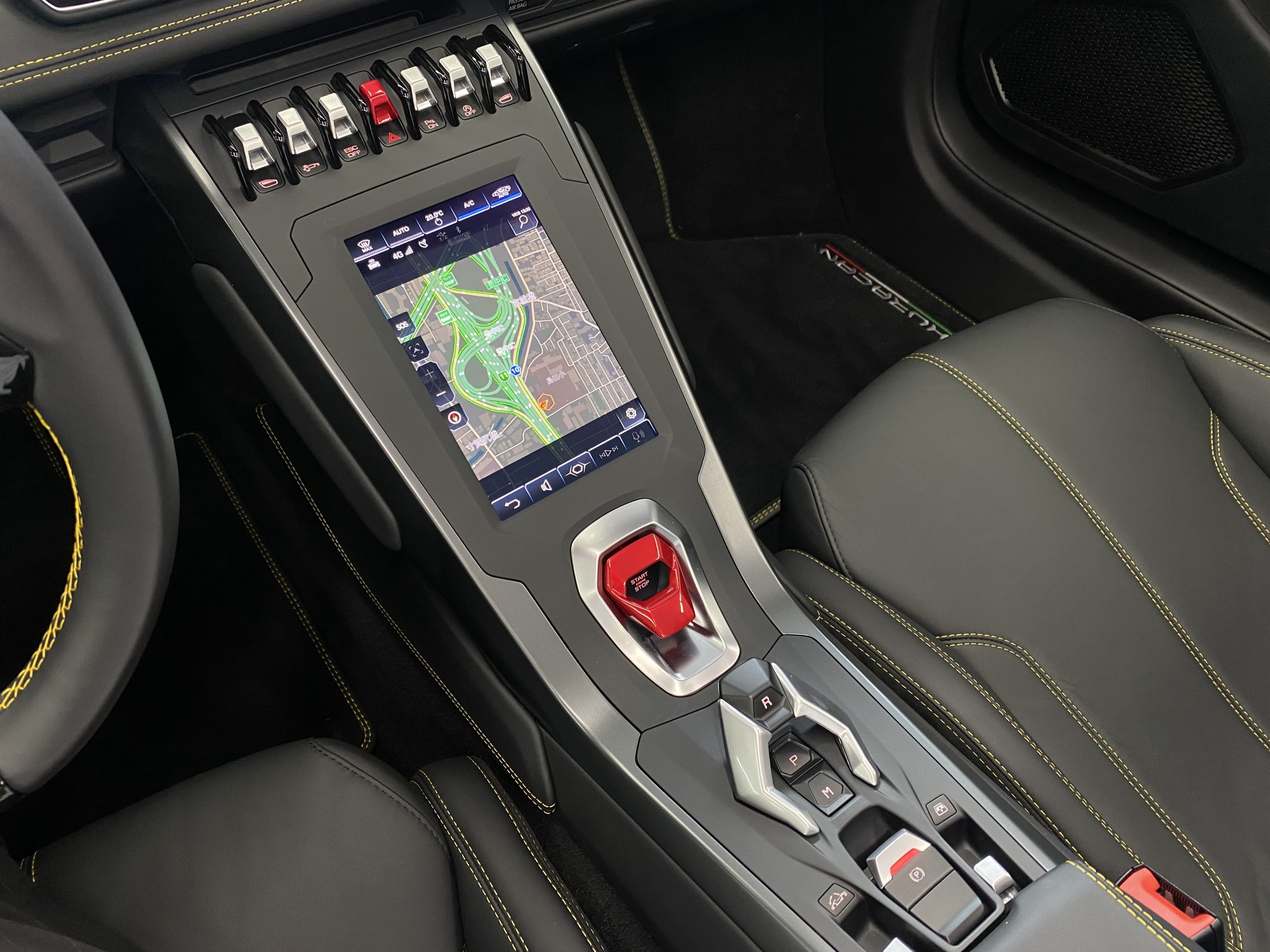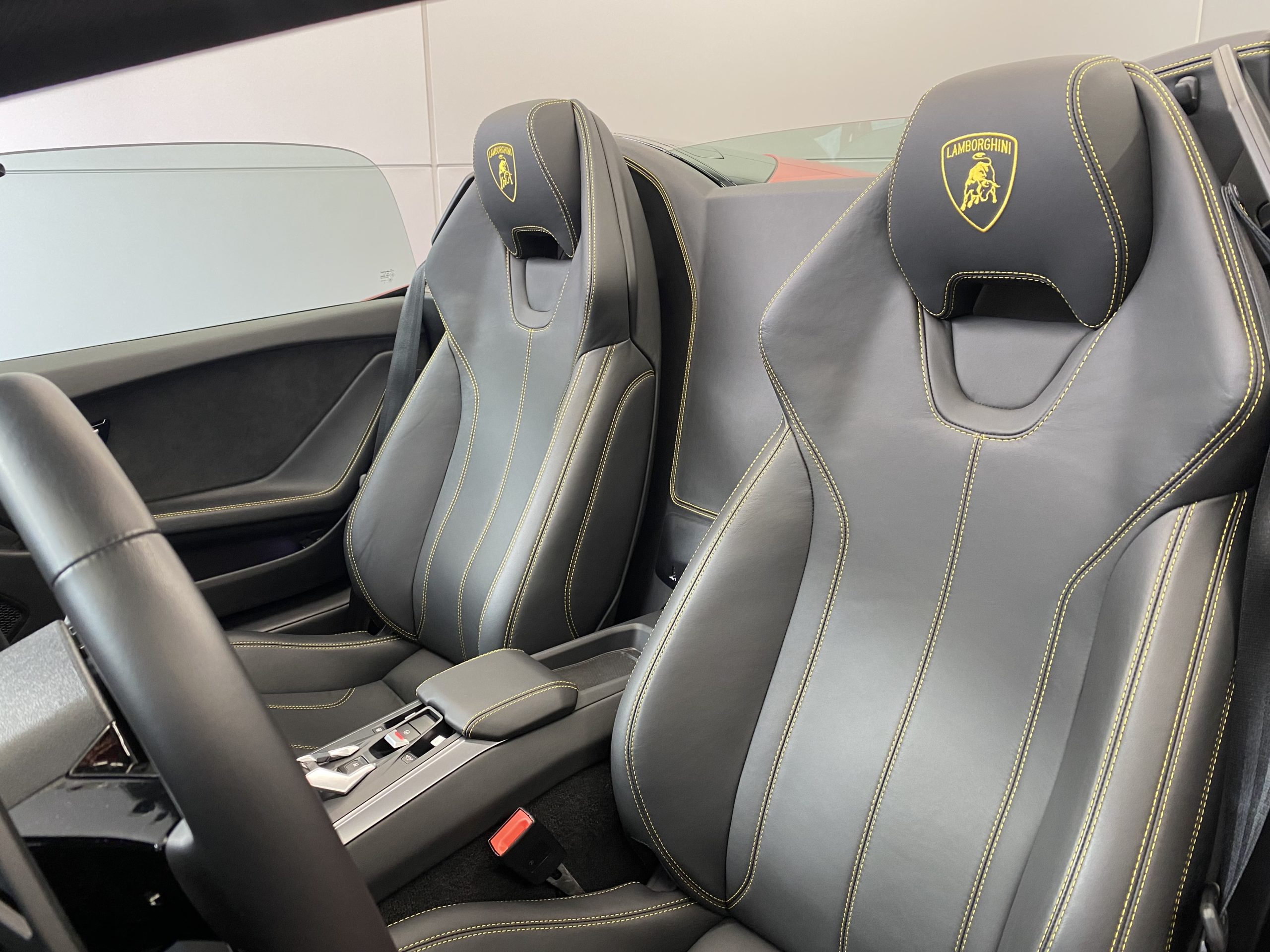 Huracán EVO RWD Spyder の洗練されたインテリアは、610 CVのエンジンサウンドを傍らに聞きながら、そのスーパースポーツカーとダイレクトにつながり対話できる空間へとあなたを迎え入れます。カーボンファイバー・スポーツシートは、すべてのHuracánシリーズで利用でき、キャビンを広く活用できます。洗練されたスポーティーなエクステリアでありながら、普段使いにも適したスーパースポーツカーとして十分な快適さを維持しています。センターコンソールに一体化された8.4インチタッチスクリーンシステムが、包括的なオンボード・エクスペリエンスをご提供します。内装オプションはレザー、アルカンターラ、そしてランボルギーニだけの特殊カーボンファイバー革新素材Carbon Skin®からお選びいただけます。