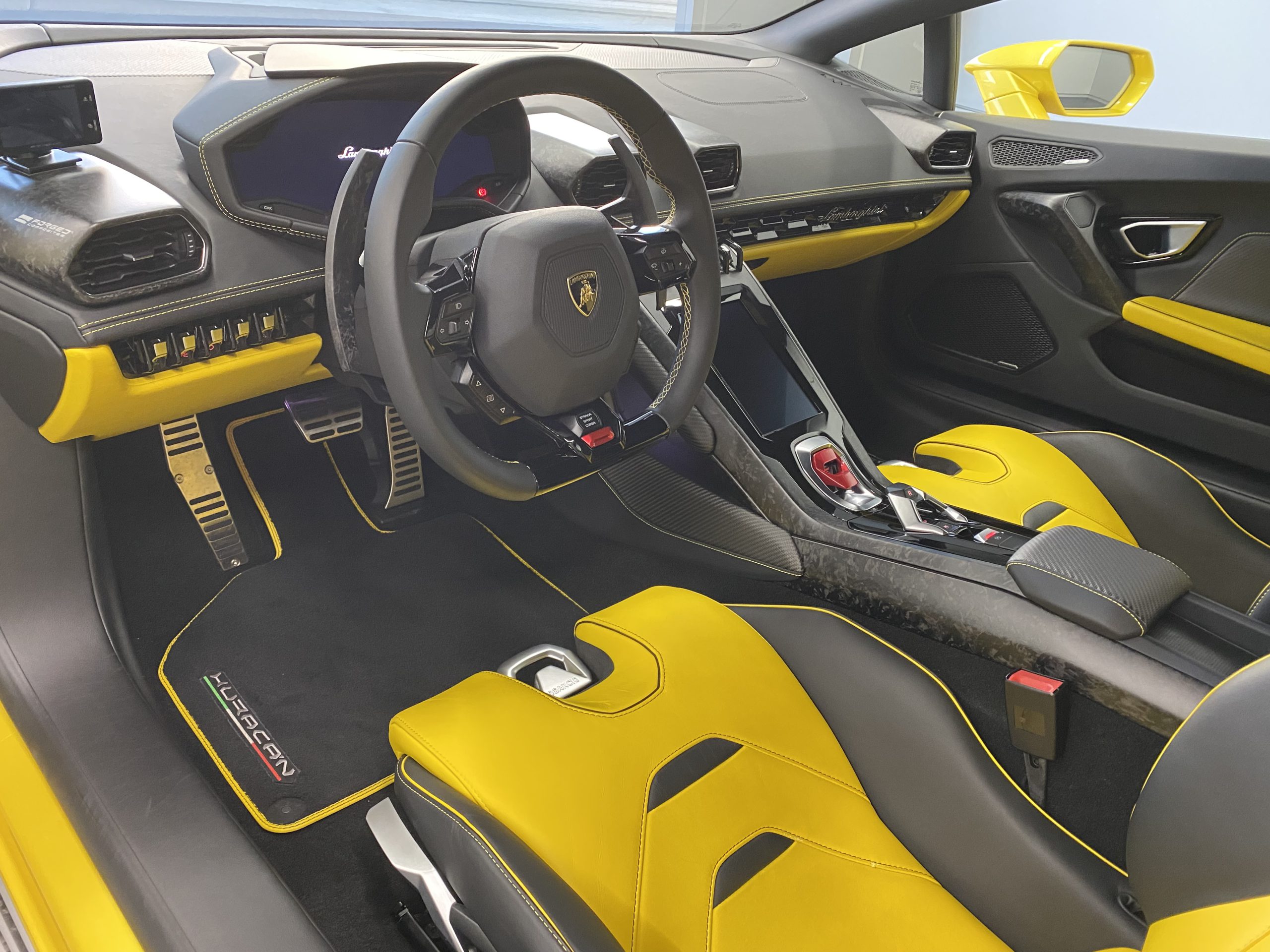コネクション、触覚、感覚的なインタラクションを体現した模範例です。先進デザインを採用したインテリアには、センターコンソール一体型8.4インチのタッチスクリーンを搭載し、洗練されたオンボード環境を作りだします。カバーはレザー、アルカンターラのほか、ランボルギーニの特殊カーボンファイバー素材 Carbon Skin® の中からお選びいただけます。