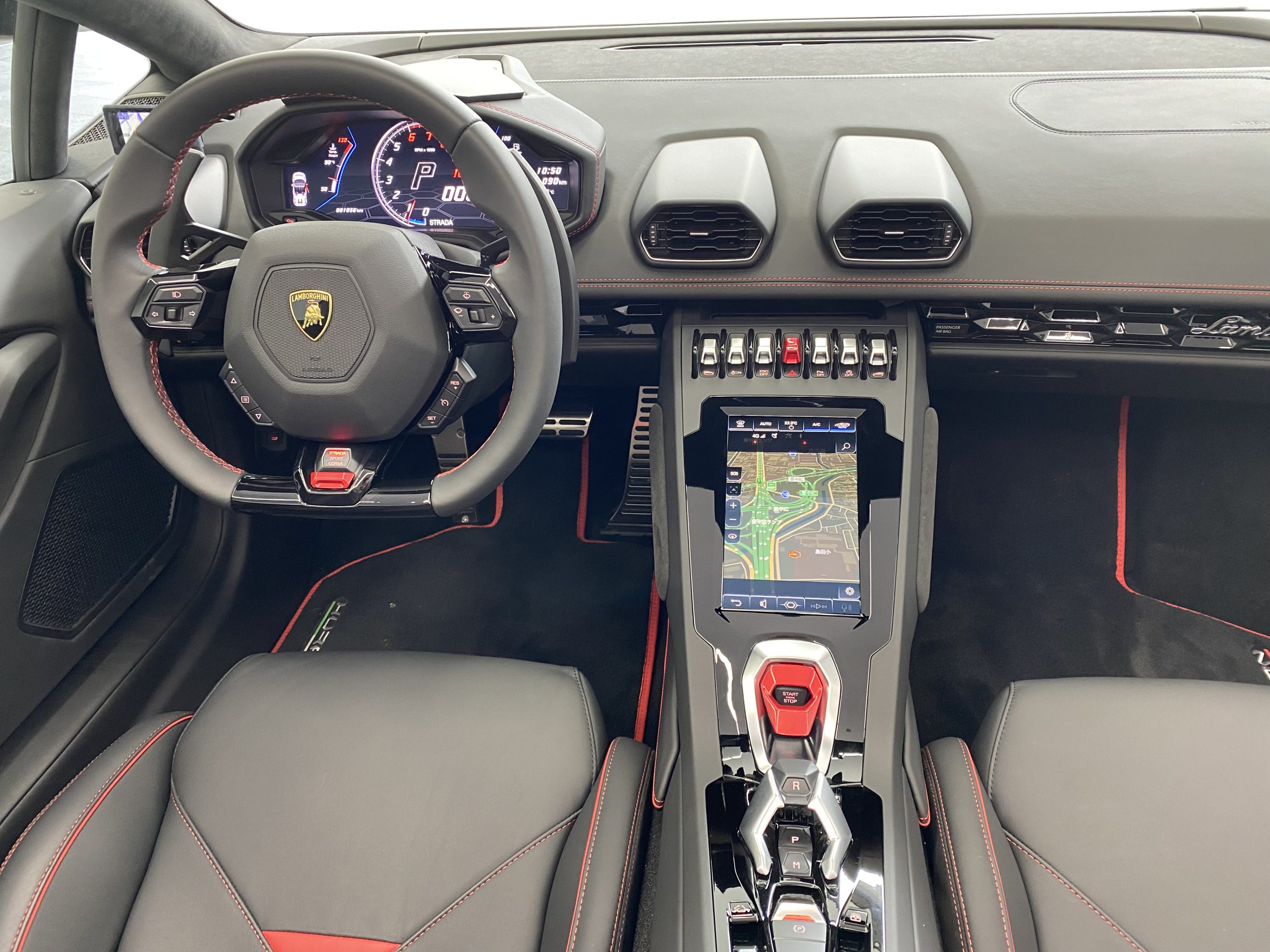 Huracán EVO Spyder のコックピットのセンタートンネルには8.4インチの最先端タッチスクリーン・システムが備わり、車両機能やエンターテインメント機能の操作が可能です。正統イタリアン・デザインに裏打ちされた内装の仕上げには、最高級の素材が採用されています。レザーカバーにはアルカンターラのほか、画期的なランボルギーニの特殊カーボンファイバー素材である Carbon Skin® が登場します。