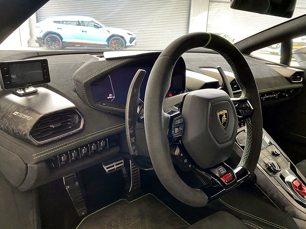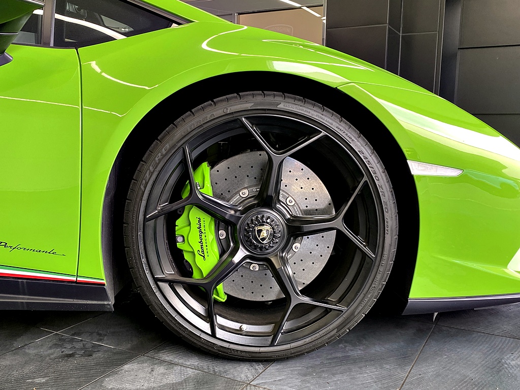 ウラカン・ペルフォルマンテはスーパー・スポーツカーのコンセプトを塗り替え、パフォーマンスという概念をかつてない高みへと引き上げました。重量、エンジン出力、シャーシをはじめとし、何よりもアクティブ・エアロダイナミクス・システム:ALAが導入されるなど、車両はいちから再設計がなされました。アウトモービリ・ランボルギーニが特許を有する成型可能なフォージド・カーボン・ファイバー素材Forged Composites®を使用することで、車両重量のさらなる軽量化に成功するとともに気品あふれる仕上がりになっています。それはウラカン・ペルフォルマンテの究極の技術特性と合わさり、全く新しい美の観念を発信しています。シートに座りエンジンをかける。これだけで、ウラカン・ペルフォルマンテと他のウラカン・モデルの違いが体感できるはずです。最速のスーパー・スポーツカーを創る、この一つの目標に向けて設計が行われました。ウラカン・ペルフォルマンテは徹底的な見直しと改良の賜物。エンジンはパワーアップし、ステアリングとサスペンションの性能も向上。超軽量素材を採用し、アクティブ・エアロダイナミクス・システムと呼ばれる革新的なシステムも導入しています。その結果パフォーマンスが向上し、よりエモーショナルなドライビングを楽しめるようになりました。 ウラカン・ペルフォルマンテの並外れたパフォーマンスは、外観にすべて表れています。フロントおよびリア・スポイラーの素材はフォージドコンポジット®。この素材の採用により空力性能が向上し、ダウンフォースの増減をコントロールしやすくなりました。これにより、最大のパフォーマンスを実感できます。新しいタイヤに、新しい軽量リムを装着。ピレリPゼロコルサは驚異的なグリップ力を誇るタイヤです。