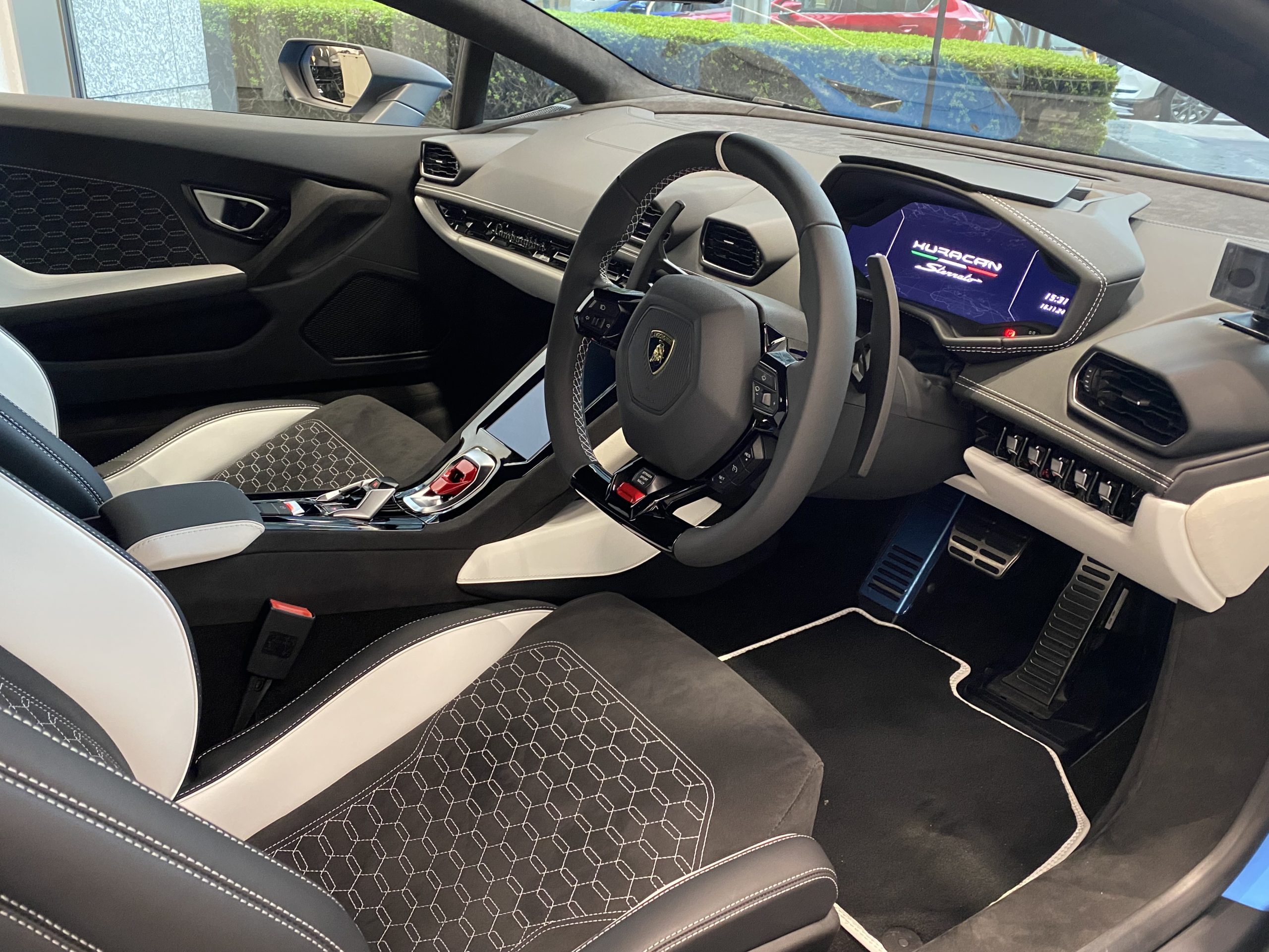 Huracán Sterratoのインテリアは、すべてのHuracánモデルがそうであるように、共通の哲学である「プロレーサーのようなフィーリング」を踏襲しています。チタン製リアアーチ、4点式シートベルト、カーボンファイバー製セミバケットスポーツシート、アルミニウム製フロアマットが、アドベンチャーを安心安全に楽しめる世界へとドライバーを誘ってくれます。ドライバーは車内の画面に表示される情報を直観的に操作でき、様々な機能をフルコントロールできます。