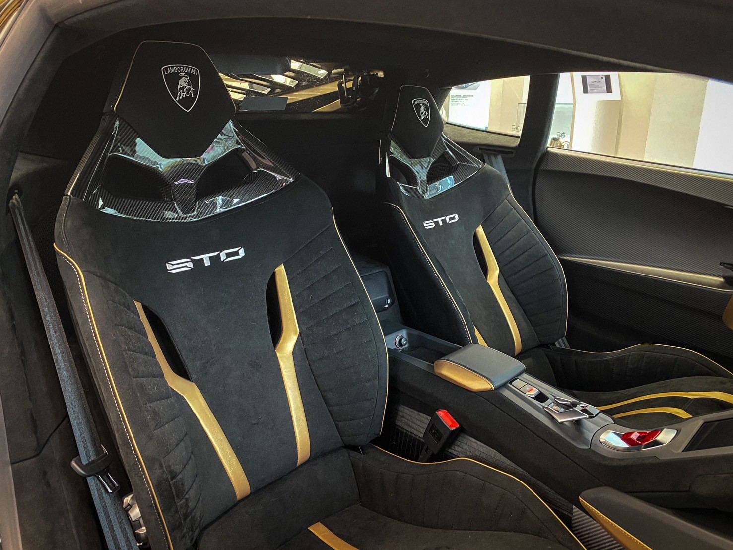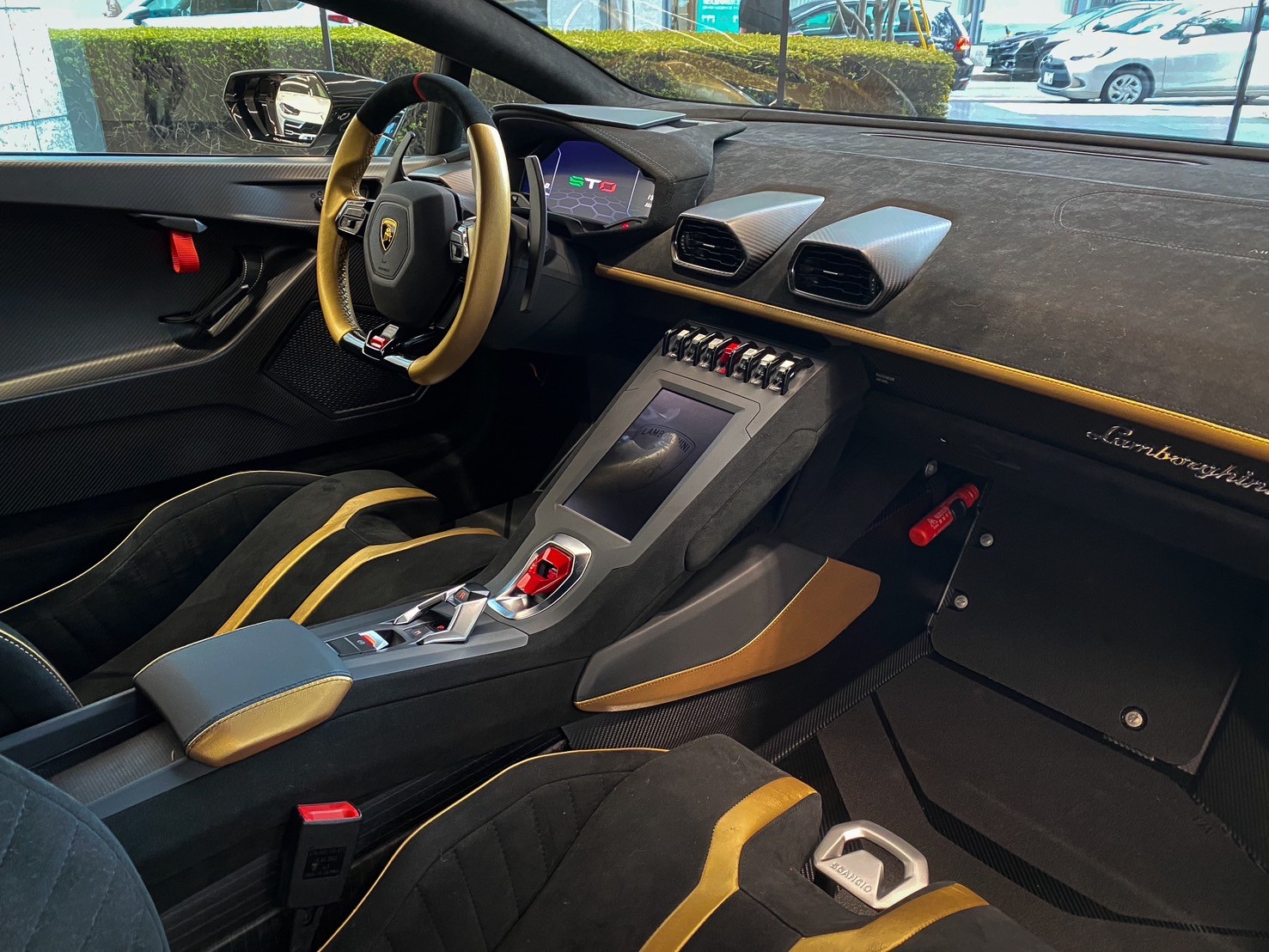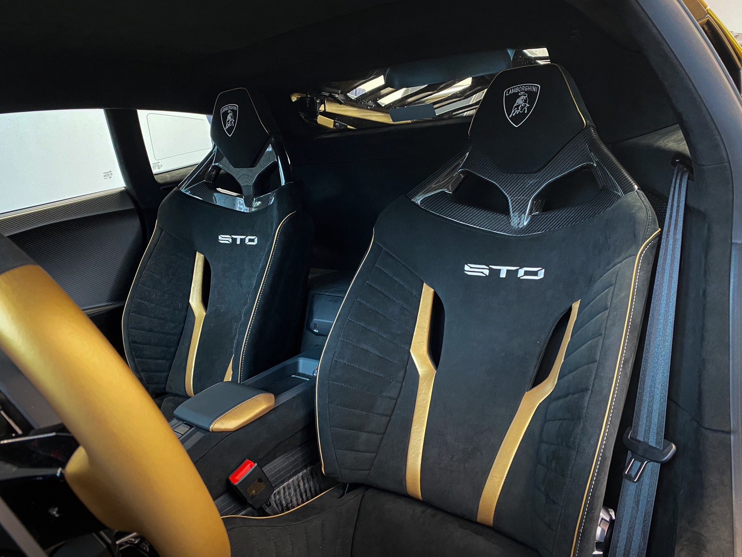 Huracán EVOを思い起こさせる新型Huracán STOのインテリア・ソリューションは、以前のモデルと比較して全体的な軽量化に貢献しています。新しいトリムや4点式**シートベルト付きチタンロールバーなどの追加機能も加わり、ハンドルを握った瞬間から他では味わえない感動を体感できる本物のレーシングマシンに仕上がっています。