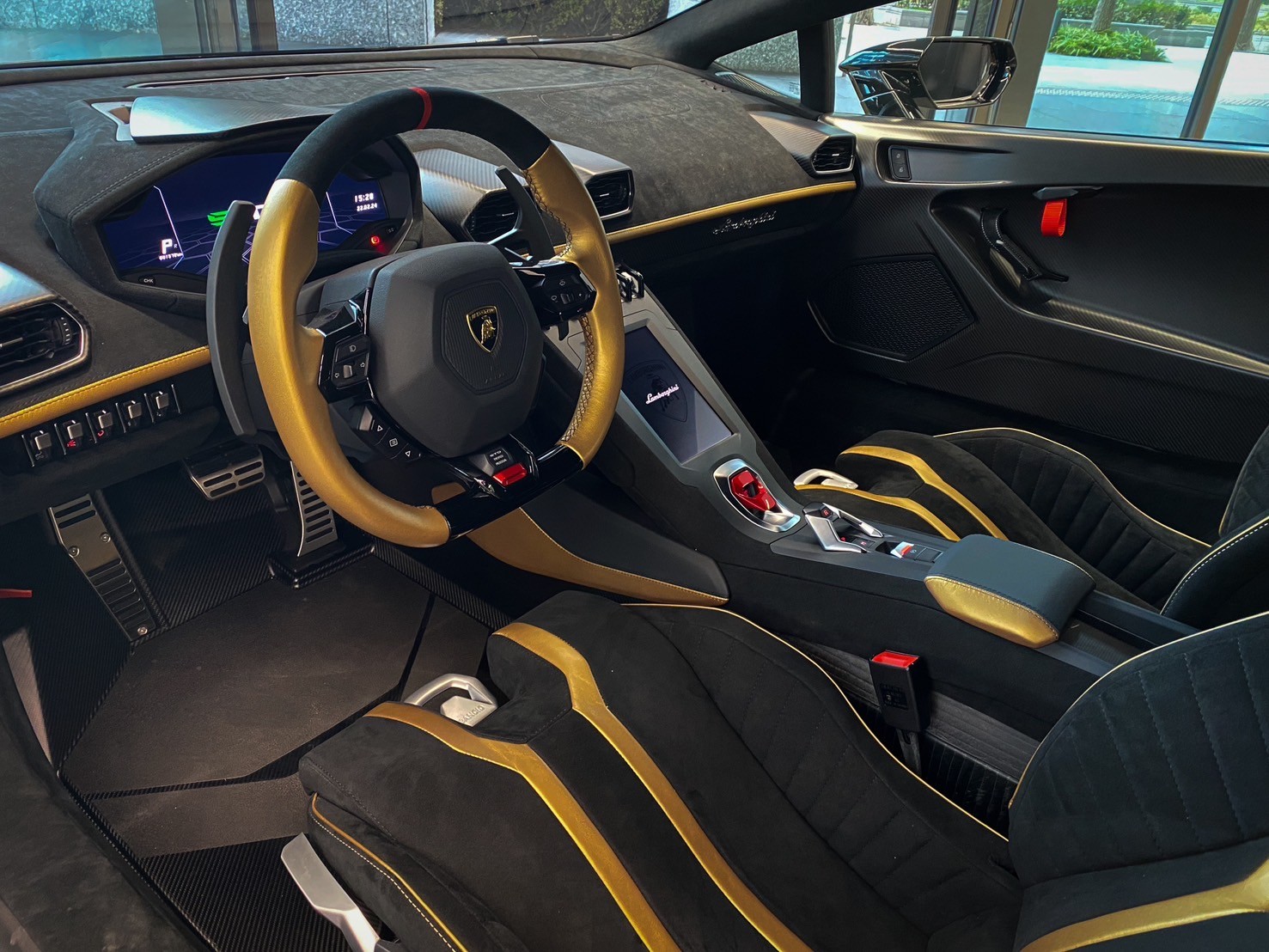 インテリアも同様に軽量化が追求され、カーボンファイバーを中心とする高品質素材が随所に使用されています。ドアパネル、インテリアのディテール、シート、フロアマットに採用されているこの革新的かつ個性的な素材は、パーフェクトなスーパー・スポーツスタイルを実現するのみならず、アルカンターラ®とカーボンスキン®による上質な仕上げと見事に調和して、その性能と機能性を発揮します。
