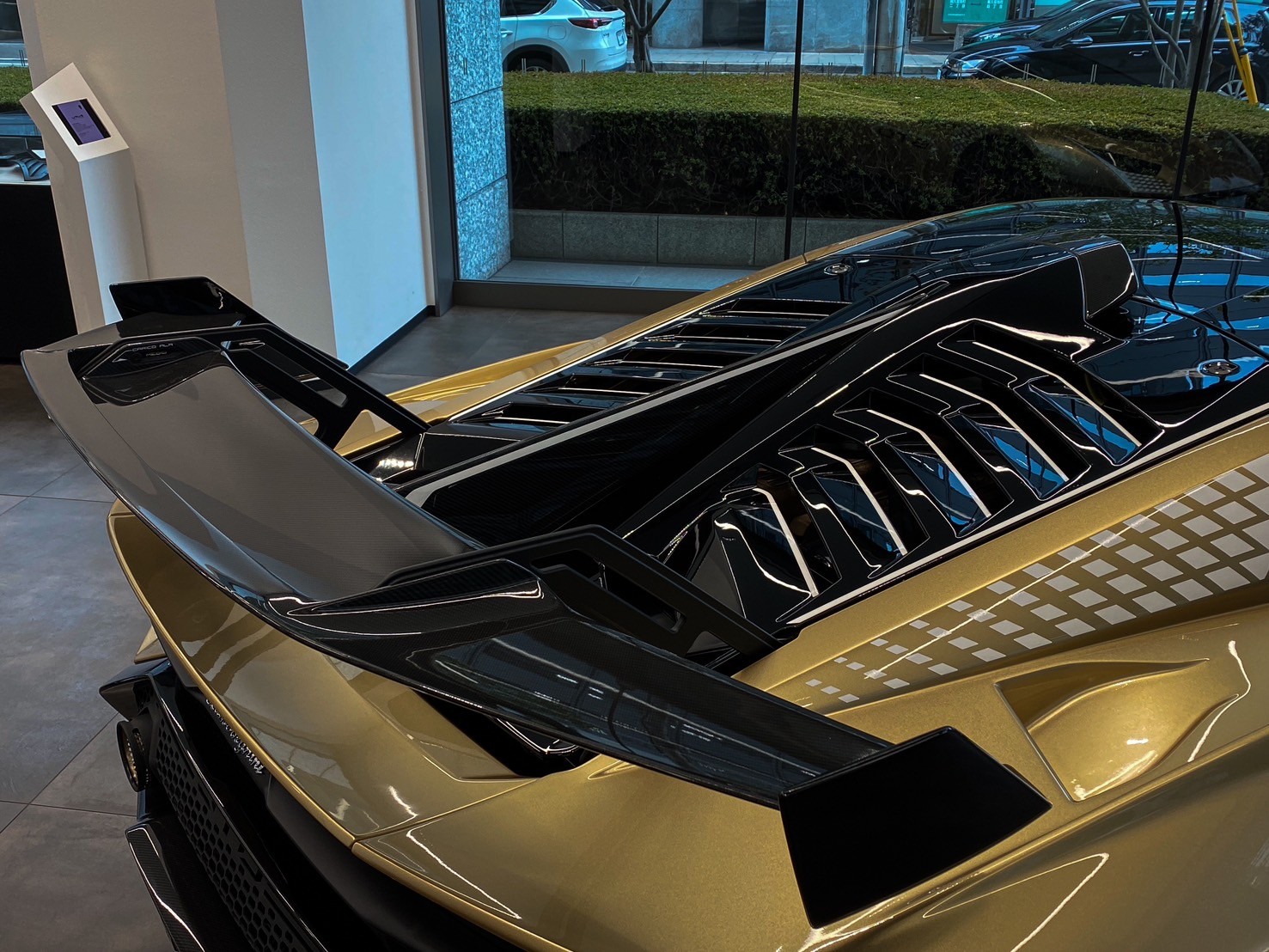Super Trofeo EVOの流れるような輪郭を彷彿とさせるHuracán STOは、その形状が一から見直されました。ボディパネルに75%以上にカーボンファイバーを採用し、エアロダイナミクスも改善されています。特筆すべきは、フロントボンネットとフェンダーを組み込んだ専用設計のボディピース「Cofango(コファンゴ)」で、フロントの空力性能を最大まで高めると同時に、軽量化も実現しています。