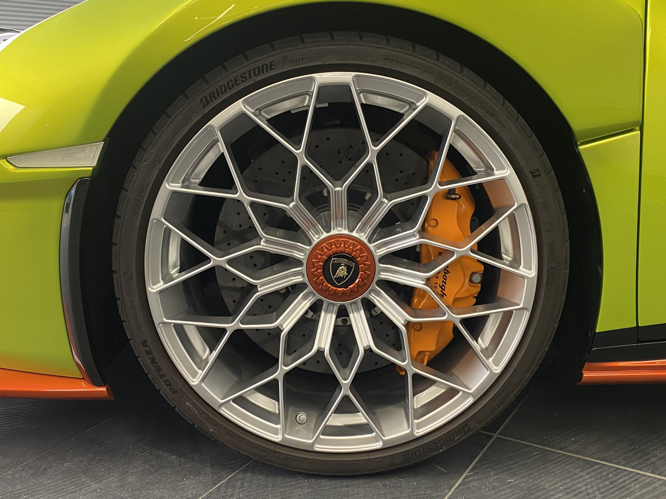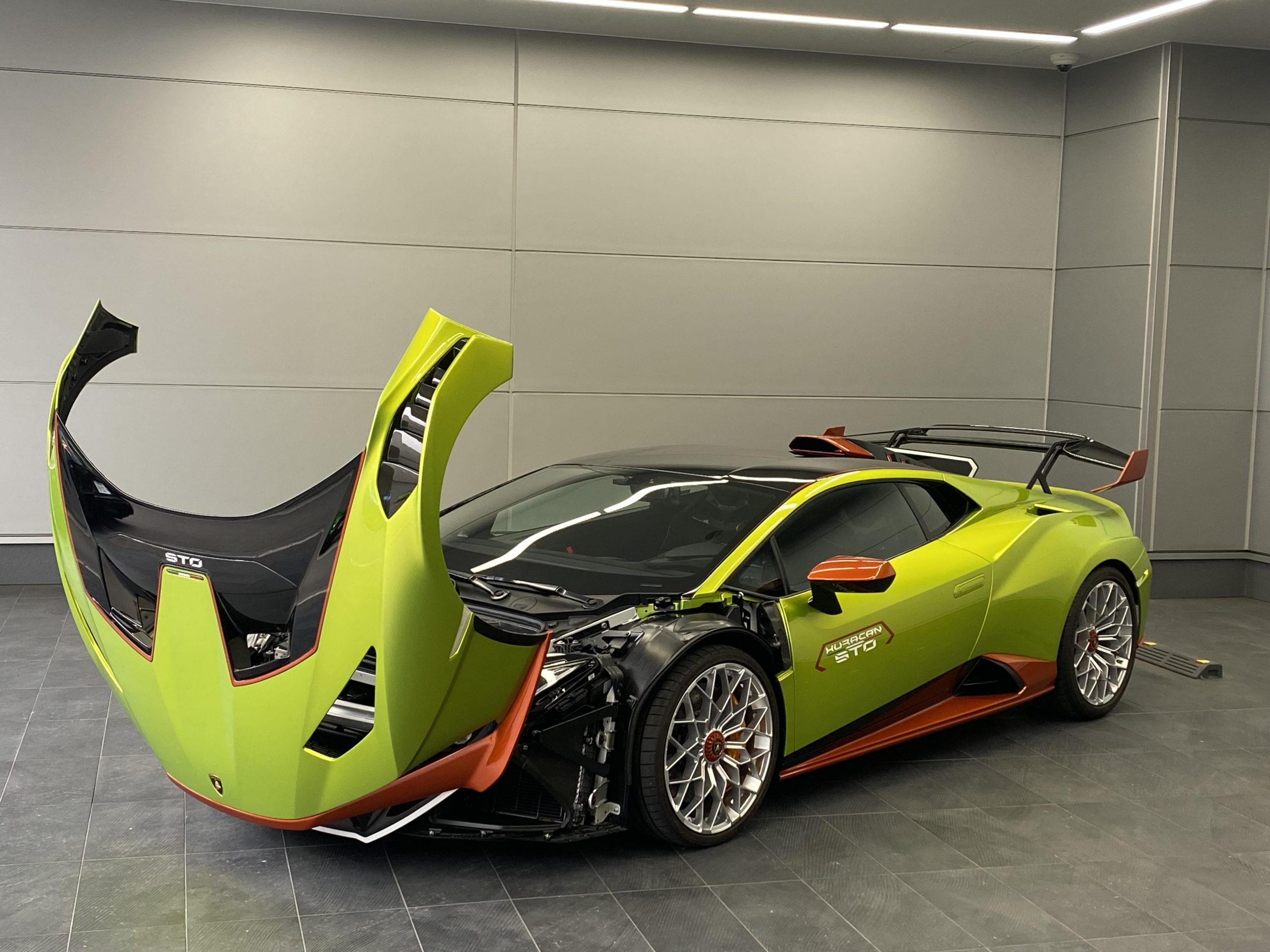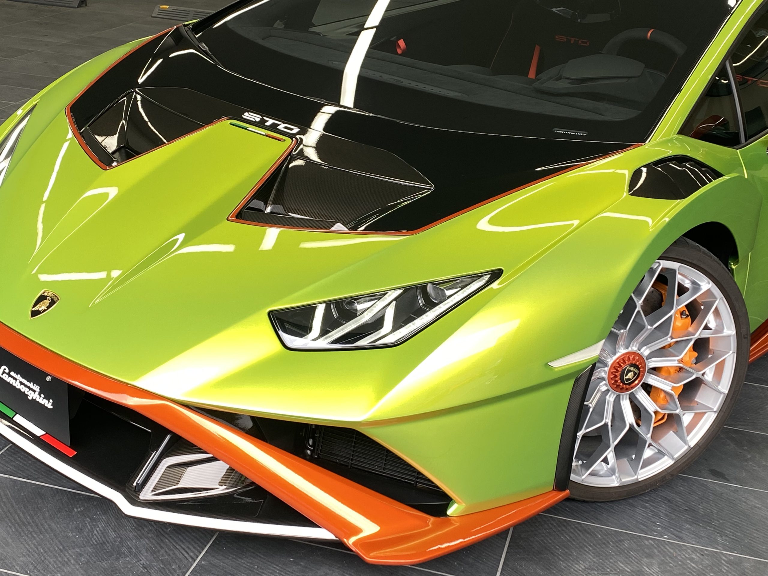 Super Trofeo EVOの流れるような輪郭を彷彿とさせるHuracán STOは、その形状が一から見直されました。ボディパネルに75%以上にカーボンファイバーを採用し、エアロダイナミクスも改善されています。特筆すべきは、フロントボンネットとフェンダーを組み込んだ専用設計のボディピース「Cofango(コファンゴ)」で、フロントの空力性能を最大まで高めると同時に、軽量化も実現しています。