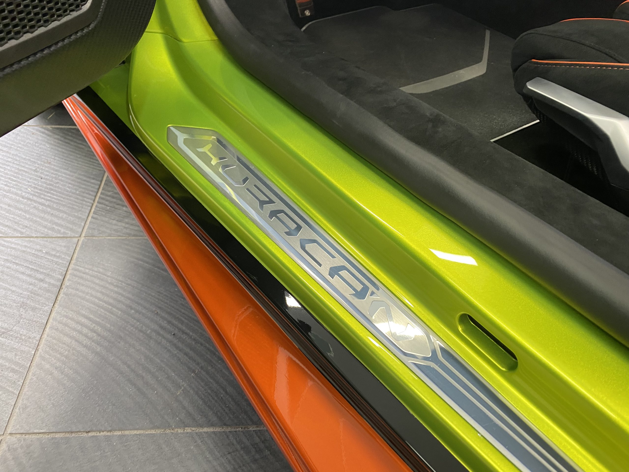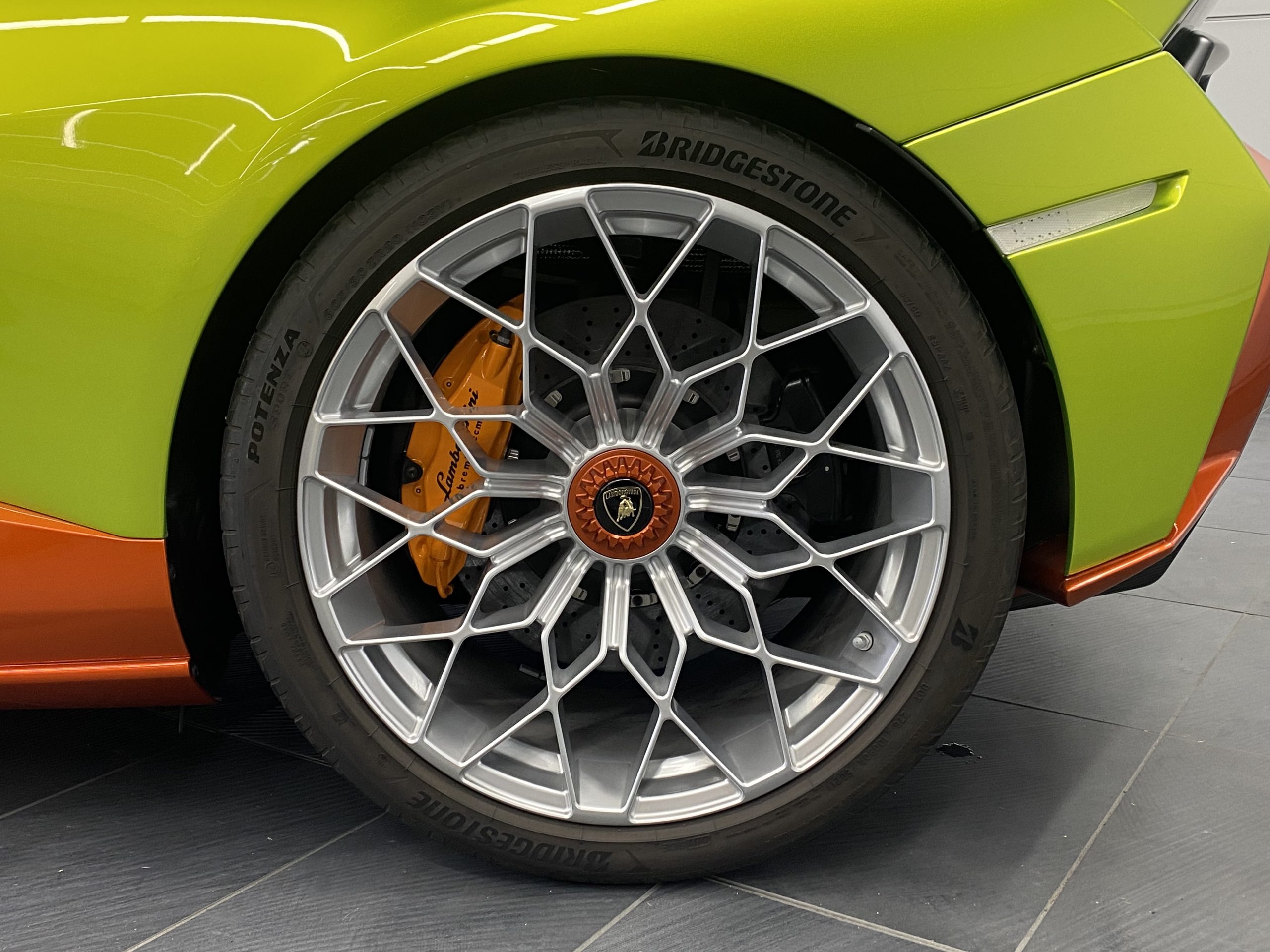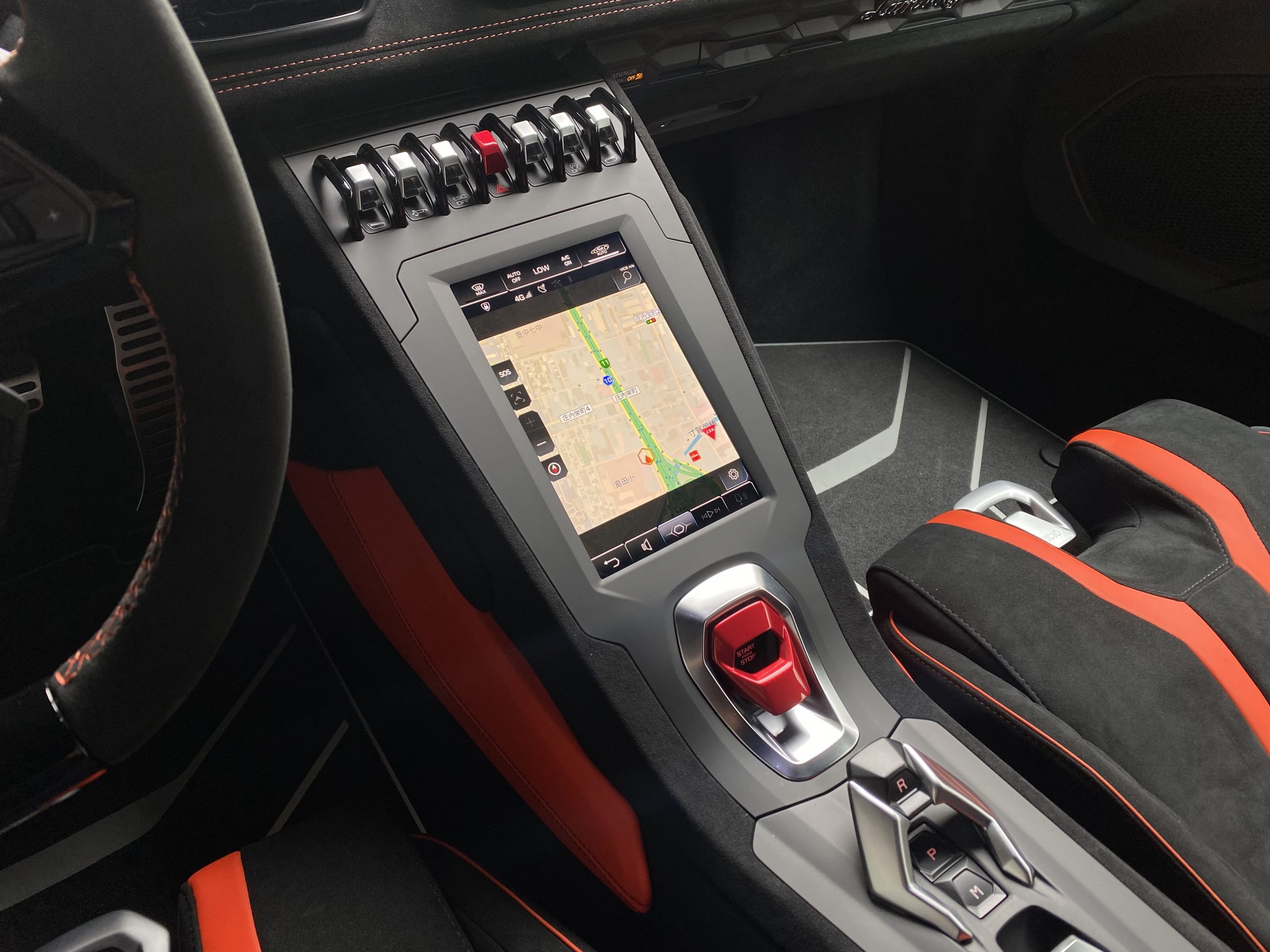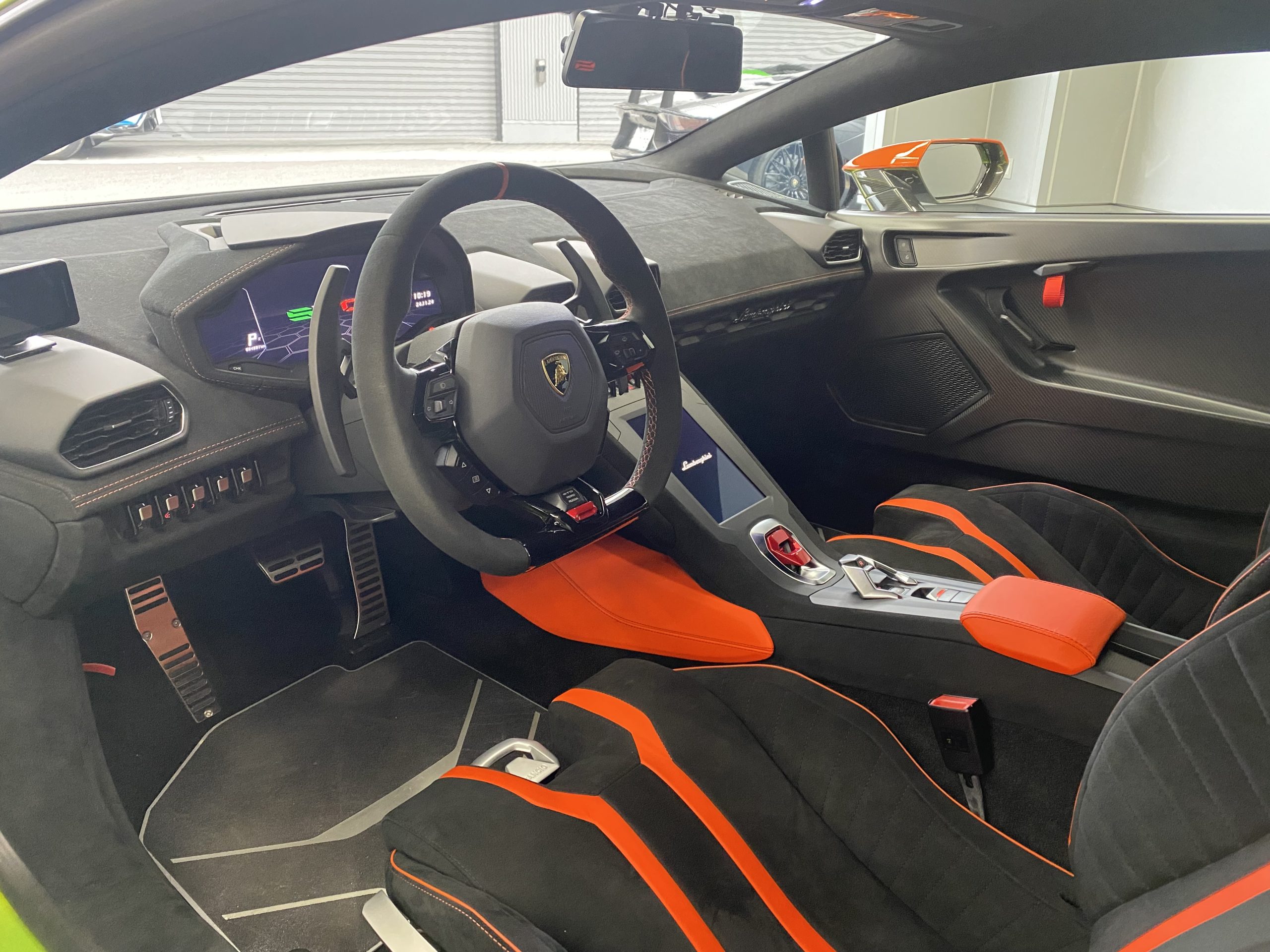 Huracán EVOを思い起こさせる新型Huracán STOのインテリア・ソリューションは、以前のモデルと比較して全体的な軽量化に貢献しています。新しいトリムや4点式**シートベルト付きチタンロールバーなどの追加機能も加わり、ハンドルを握った瞬間から他では味わえない感動を体感できる本物のレーシングマシンに仕上がっています。