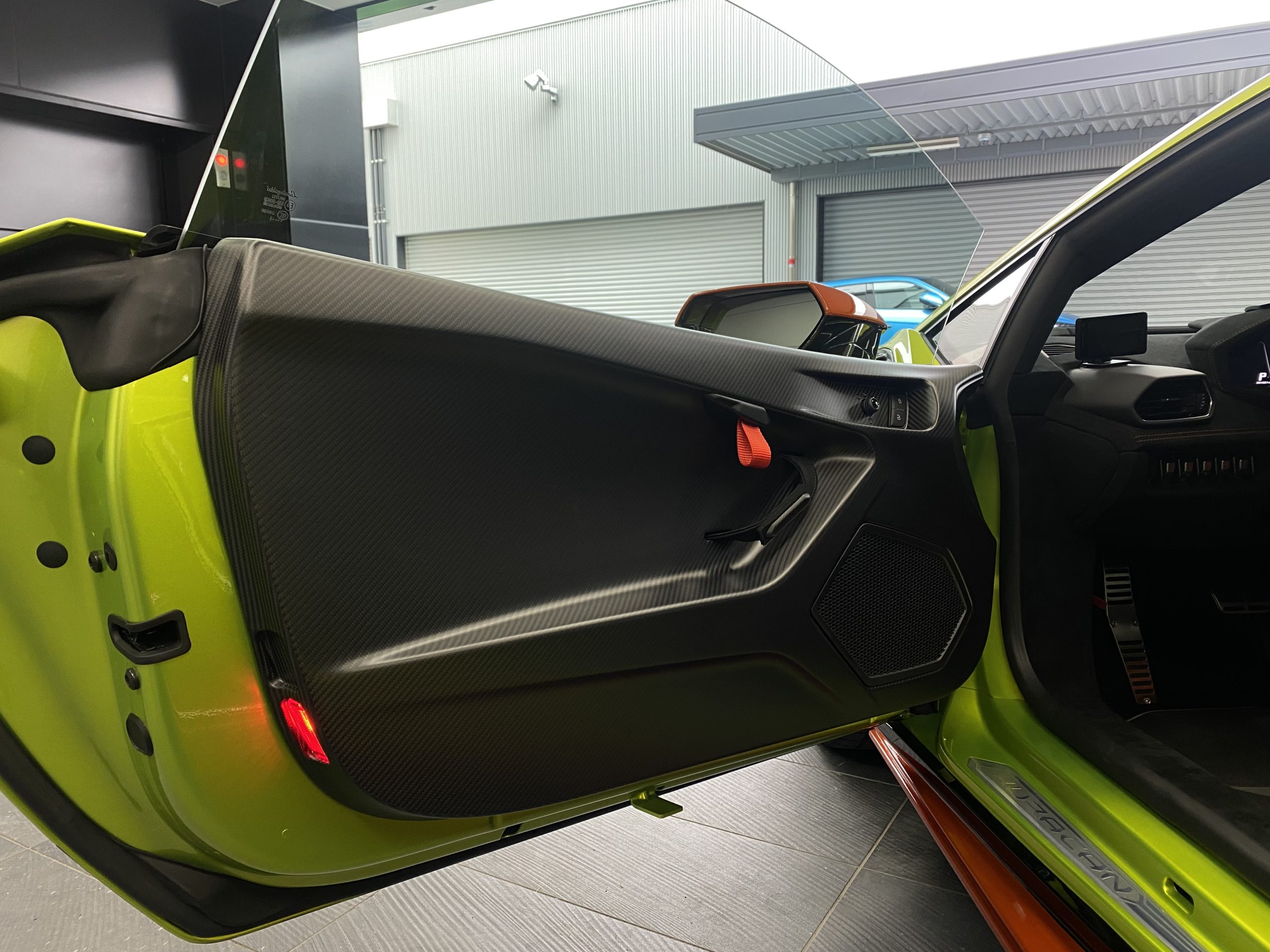 インテリアも同様に軽量化が追求され、カーボンファイバーを中心とする高品質素材が随所に使用されています。ドアパネル、インテリアのディテール、シート、フロアマットに採用されているこの革新的かつ個性的な素材は、パーフェクトなスーパー・スポーツスタイルを実現するのみならず、アルカンターラ®とカーボンスキン®による上質な仕上げと見事に調和して、その性能と機能性を発揮します。