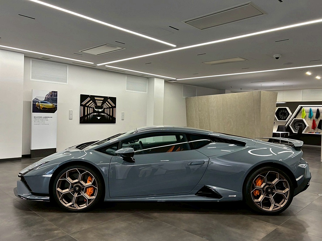 Huracán Tecnicaのデザインコンセプトは、「性能」と「美しさ」を両立させる架け橋です。ボディラインは、Super Trofeo EVO2のレーシングDNAに由来する個性を力強く表現します。フロントとリアのアーキテクチャはシャープさを増したラインに変更、エアロダイナミクスを向上させ、あらゆるコンディション、特にサーキット走行での安定性と快適性が実現しました。