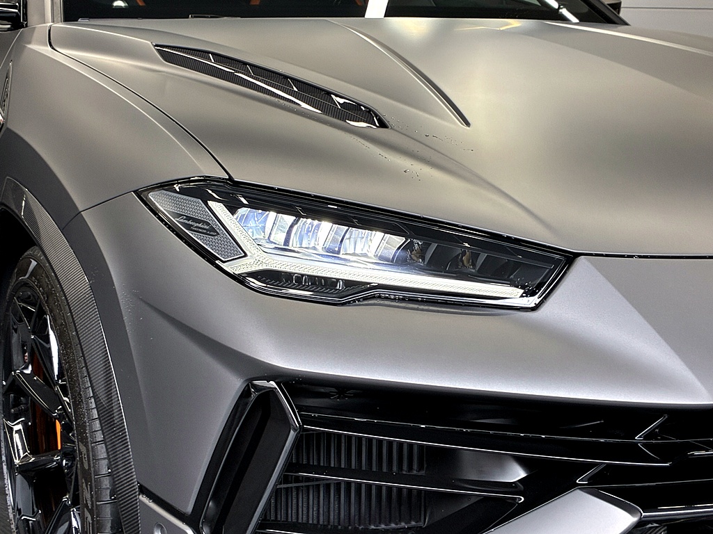 Urus Performanteのデザインは、ランボルギーニのゆるぎない原則である「Form follows function」(形態は機能に従う)を完全な形で表現しています。カーボンファイバー製の軽量部品を広範に採用したことは、大幅な軽量化の実現と同時に、スーパースポーツカーらしいプロポーションを持ち、スポーティーでスマート、かつどこまでも大胆なPerformanteデザインの最大の特徴となっています。