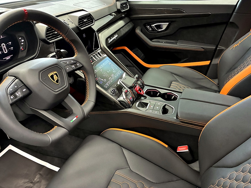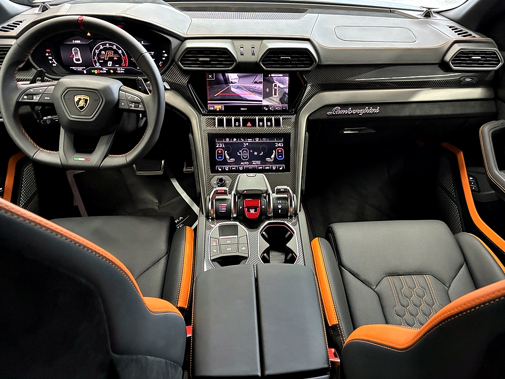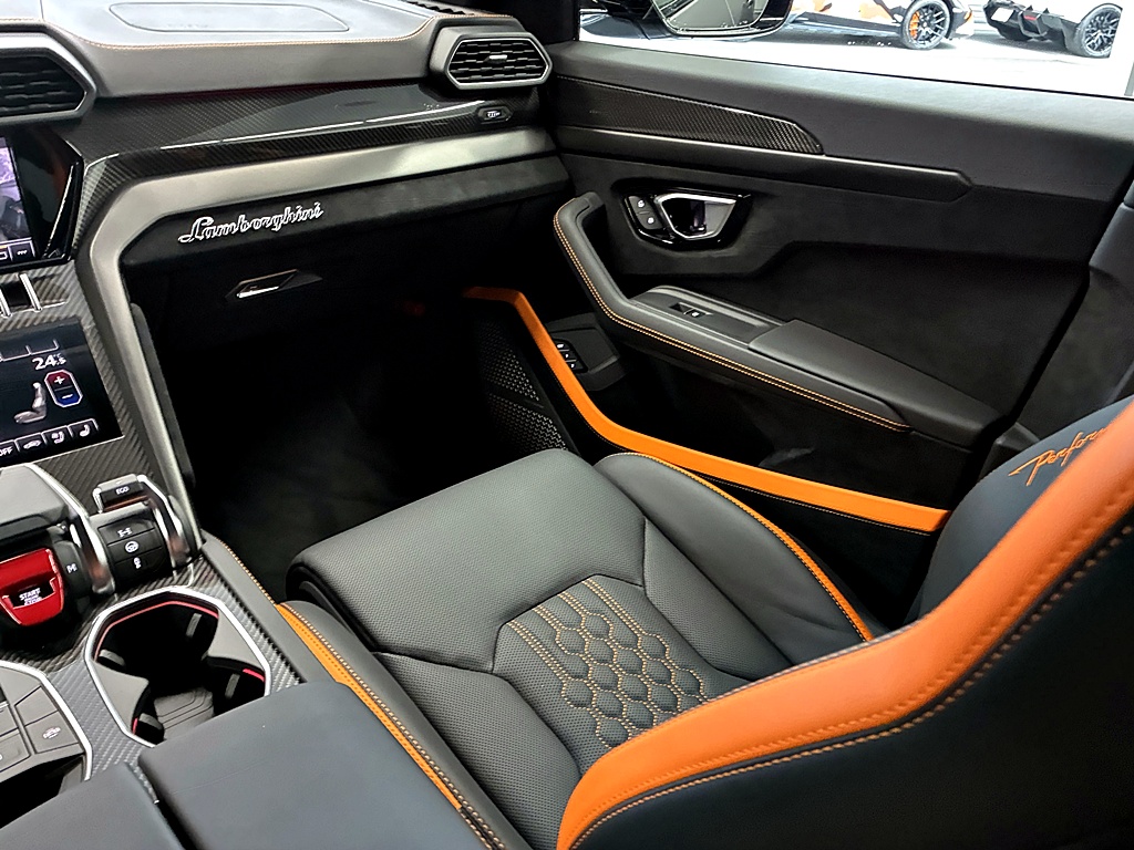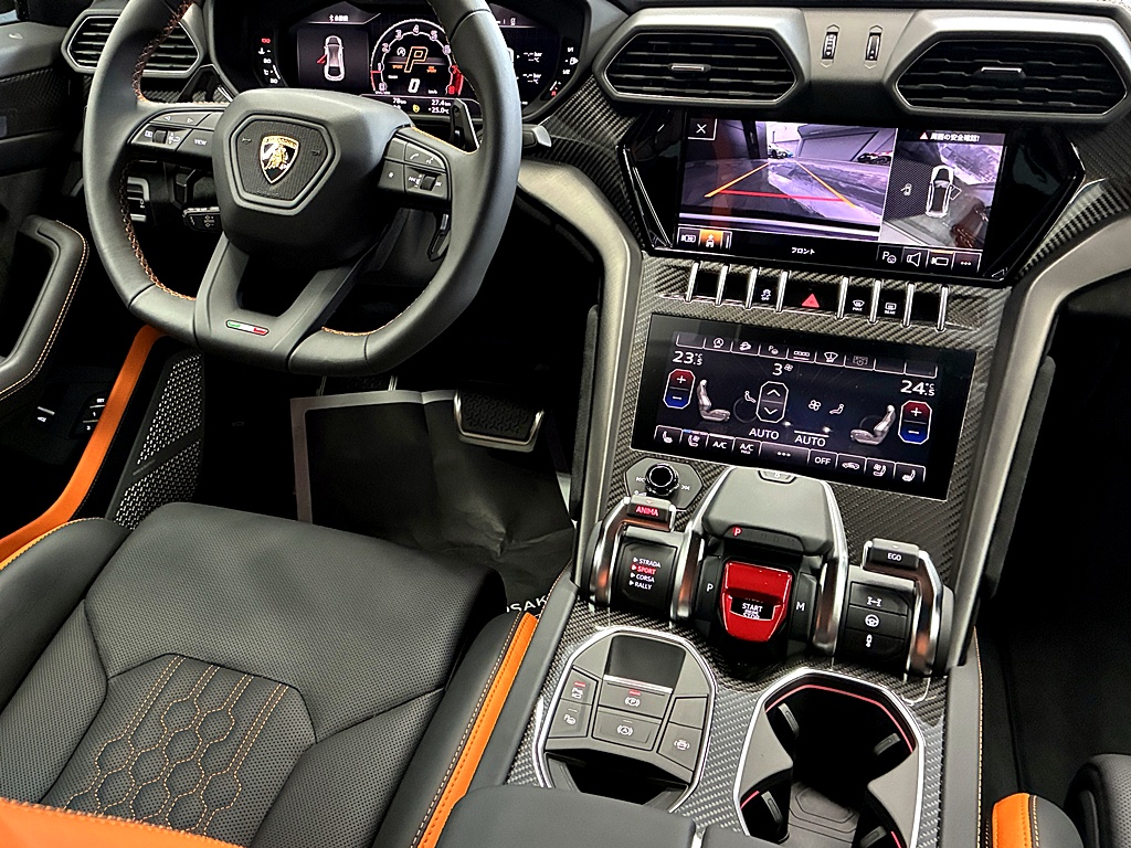 Urus Performanteのインテリアはドライバーを第一に考えてデザインされており、アルカンターラやカーボンファイバーなどの革新的な軽量素材で強化されています。ダークな色調でコントラストが美しいステッチ、Performante限定ロゴ、そしてユニークなディテールが、このモデルのスポーティーなキャラクターを惜しみなく表現しています。人間工学に基づいた機能性を持ち、現代的で洗練されたUrus Performanteのインテリアは、ドライバーが「プロレーサーのようなフィーリング」を得られるようにデザインされています。