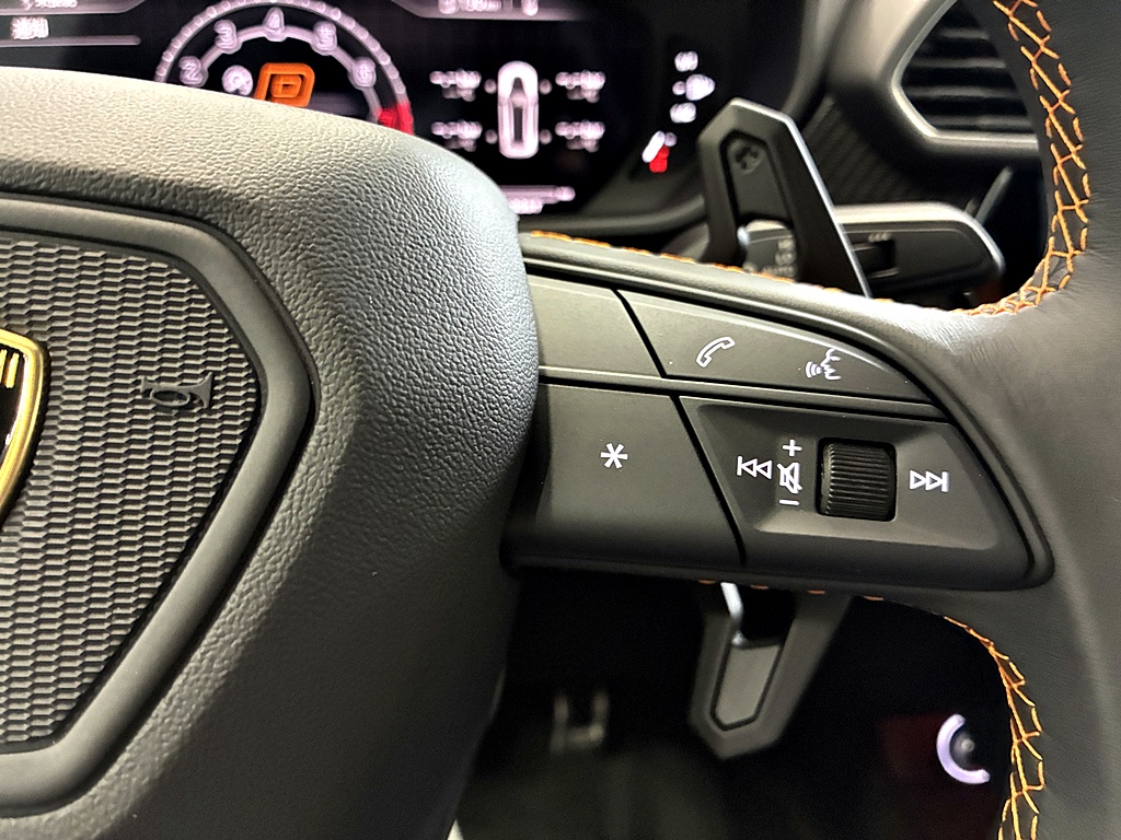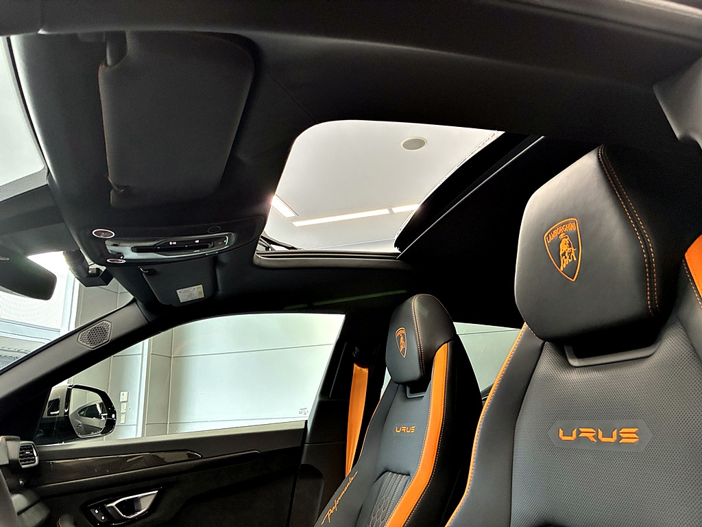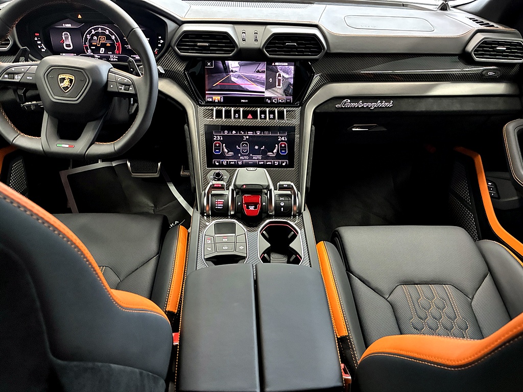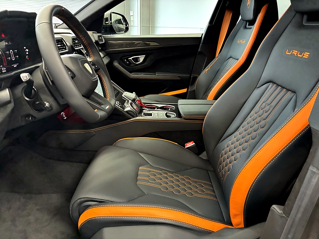Urus Performanteのインテリアはドライバーを第一に考えてデザインされており、アルカンターラやカーボンファイバーなどの革新的な軽量素材で強化されています。ダークな色調でコントラストが美しいステッチ、Performante限定ロゴ、そしてユニークなディテールが、このモデルのスポーティーなキャラクターを惜しみなく表現しています。人間工学に基づいた機能性を持ち、現代的で洗練されたUrus Performanteのインテリアは、ドライバーが「プロレーサーのようなフィーリング」を得られるようにデザインされています。
